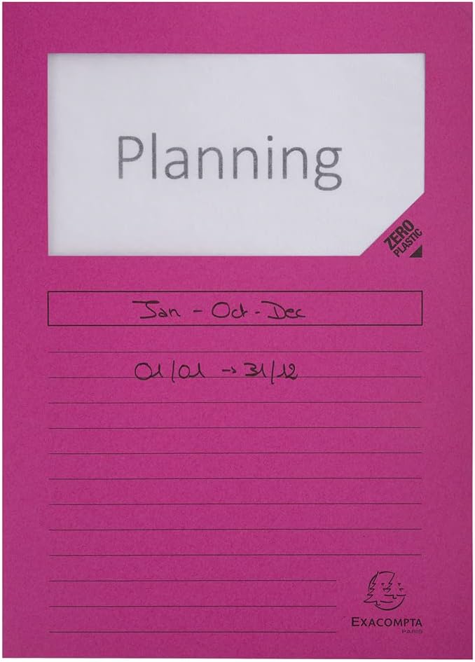 Exacompta 50102E Fenstermappen Packung, 100 Stück, mit Organisationsdruck aus Recycling-Karton 120 g