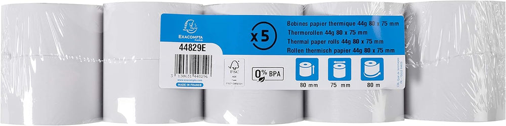 Exacompta 44829E 50er Pack Thermopapierrollen 1-lagig, Breite: 80mm, Länge 80m, Durchmesser Kern: 12