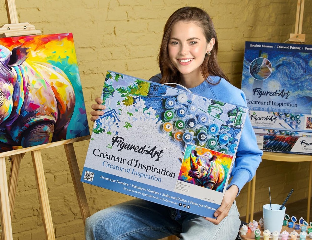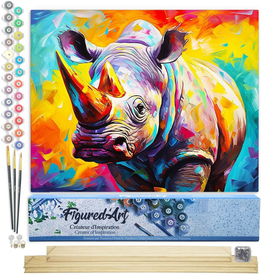 Figured'Art Malen Nach Zahlen Erwachsene Mit Rahmen Nashorn Farbenfroh Abstrakt - Paint by Numbers B