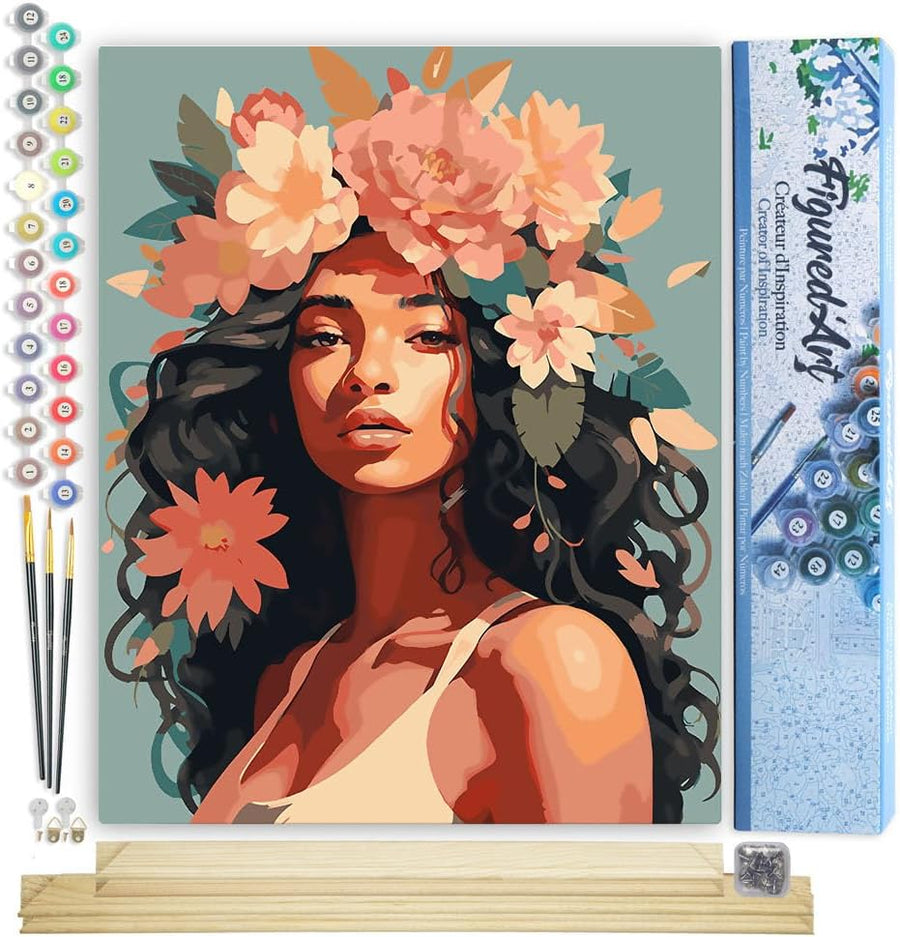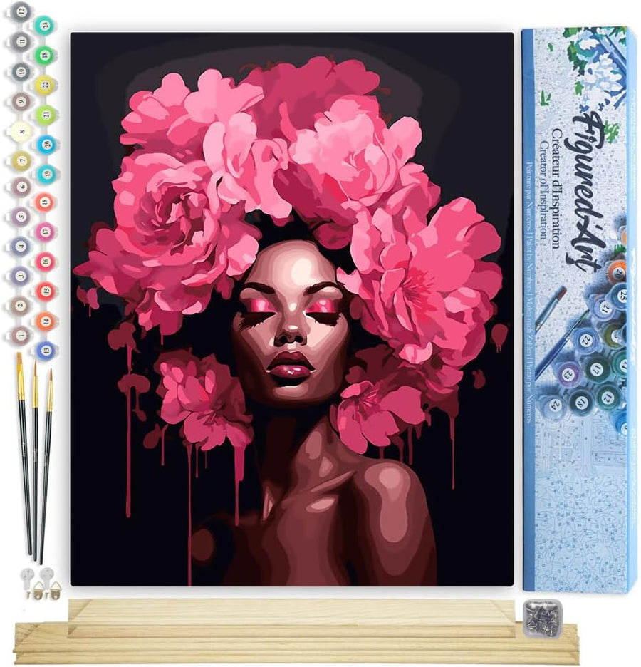 Figured'Art Malen Nach Zahlen Erwachsene Mit Rahmen Pfingstrosen Haar Dame - Paint by Numbers Bastel