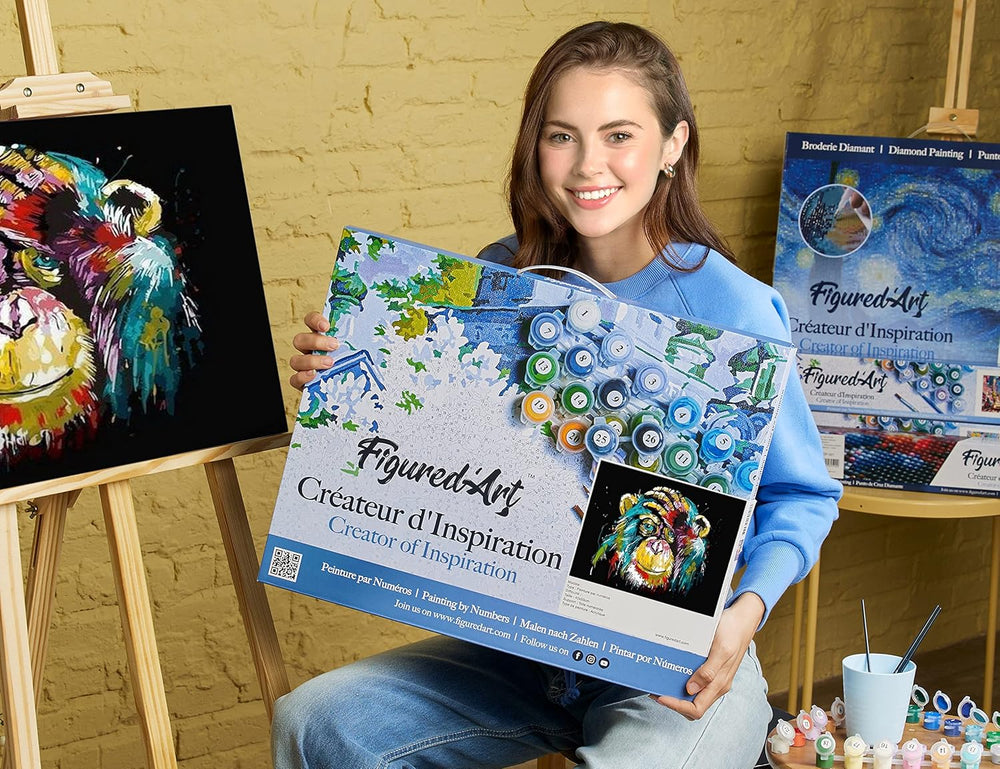 Figured'Art Malen Nach Zahlen Erwachsene Mit Rahmen Raubkatze Pop Art - Paint by Numbers Basteln DIY