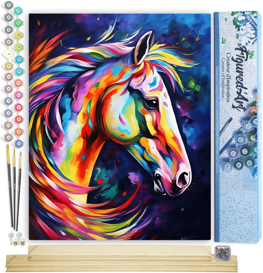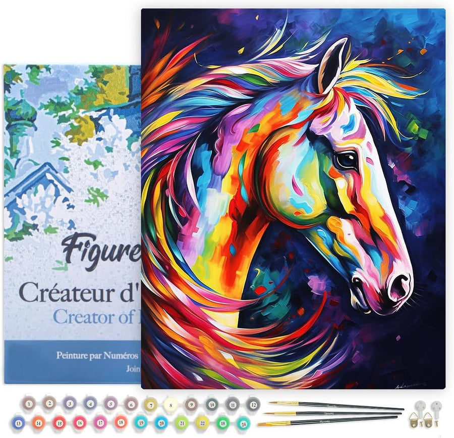 Figured'Art Malen Nach Zahlen Erwachsene Mit Rahmen Pferd Farbenfroh Abstrakt - Paint by Numbers Bas