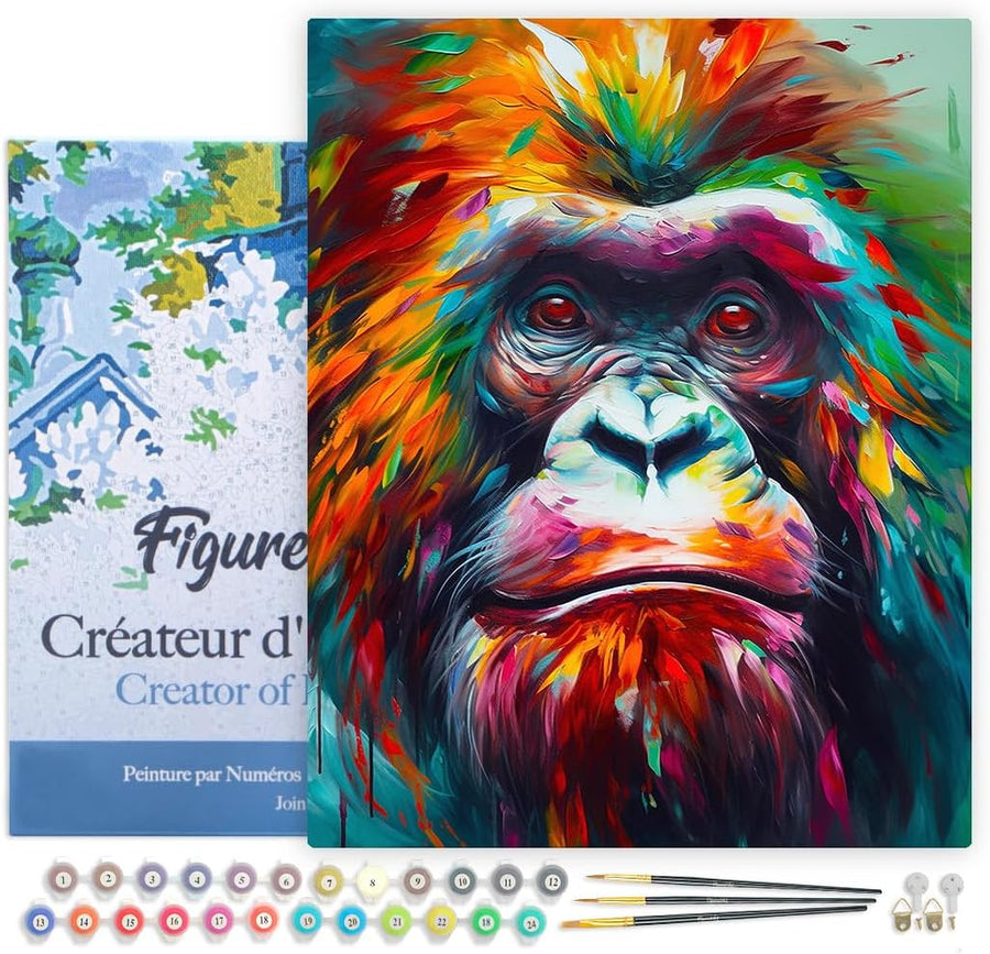 Figured'Art Malen Nach Zahlen Erwachsene Mit Rahmen Orang-Utan Farbenfroh Abstrakt - Paint by Number