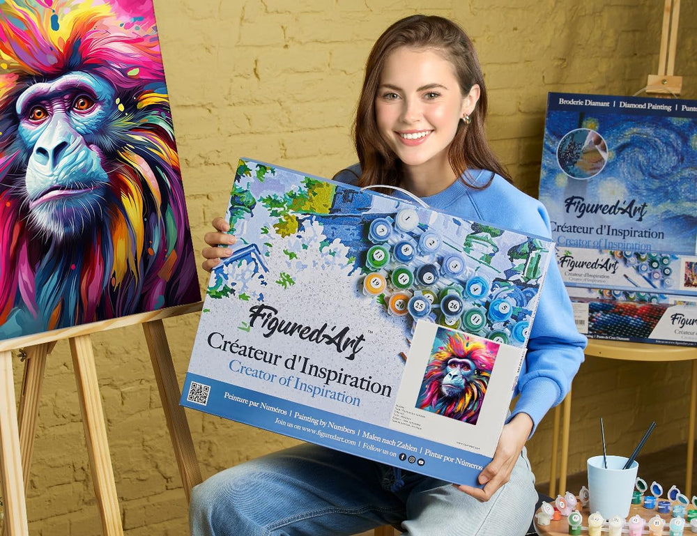 Figured'Art Malen Nach Zahlen Erwachsene Mit Rahmen Pavian Farbenfroh Abstrakt - Paint by Numbers Ba