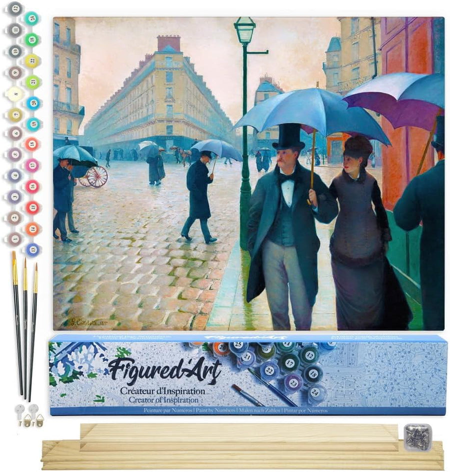 Figured'Art Malen Nach Zahlen Erwachsene Mit Rahmen Paris-Strasse, Regentag - Gustave Caillebotte -