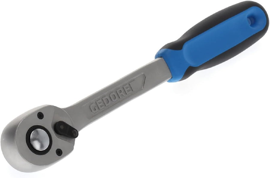 GEDORE Aluminium-Umschaltknarre, für 1/2 Zoll, 12,5 mm Antrieb, 7,5degree Rückschwenkwinkel, 2K-Grif