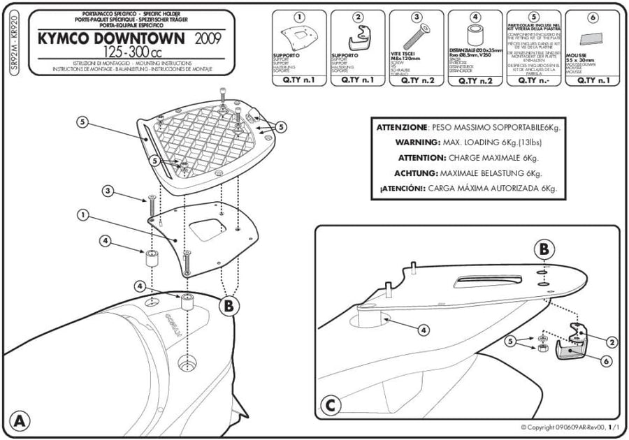 Givi Top Case Träger Monolock für Kymco Downtown 125i - 300i (2009-)