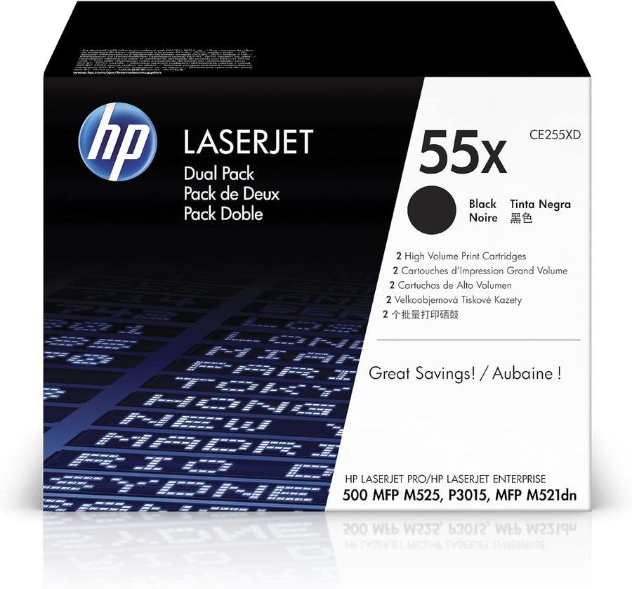 HP 55X 2er-Pack (CE255XD) Schwarz Original Toner mit hoher Reichweite für HP Laserjet Enterprise P30