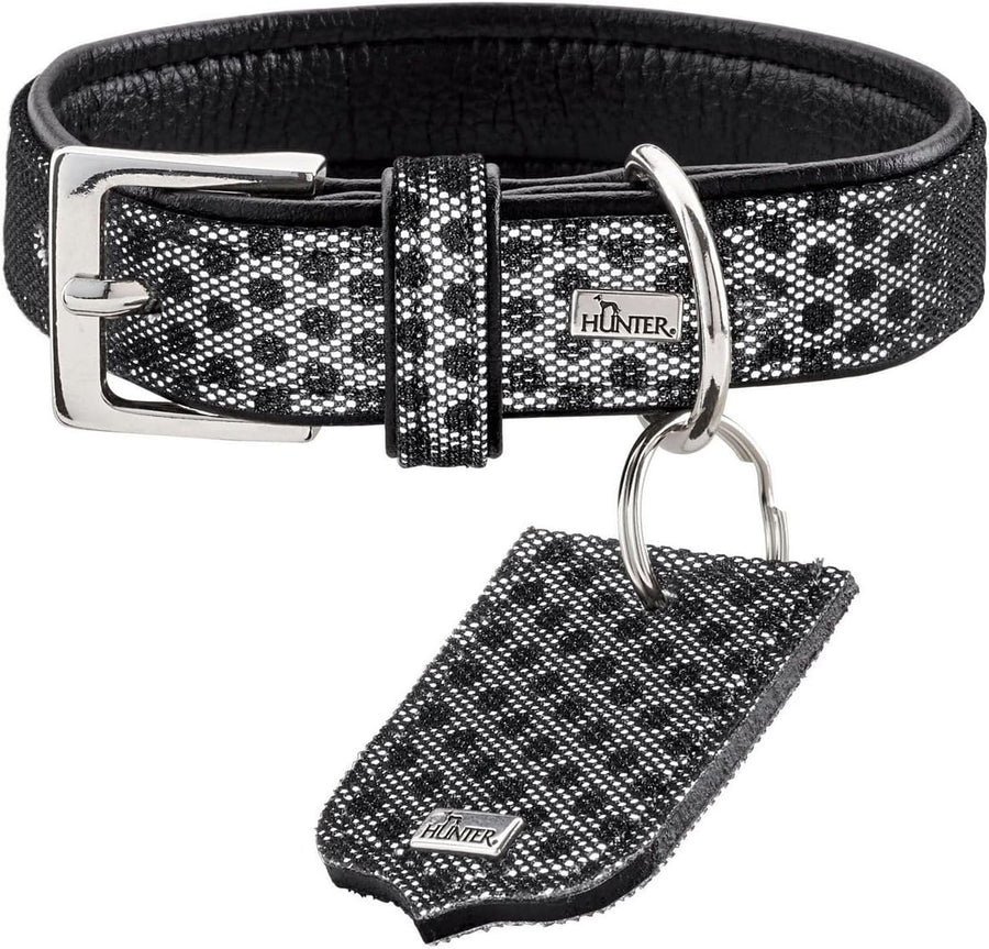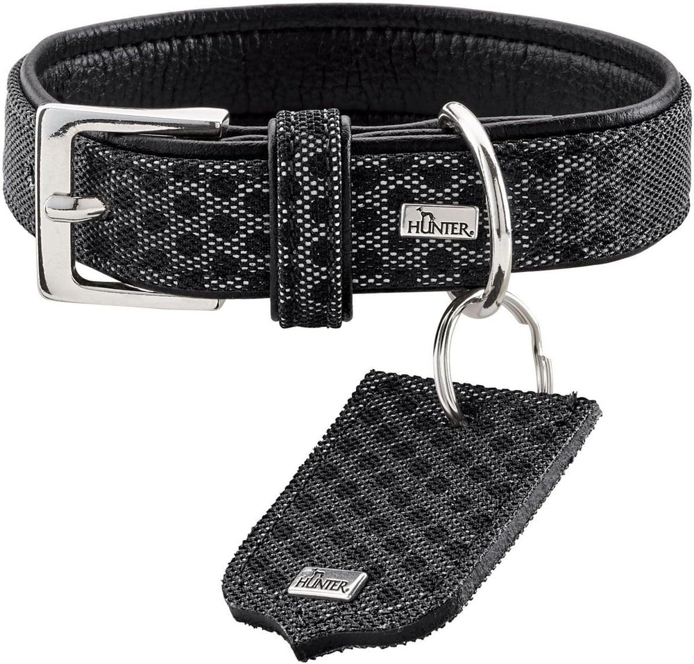 HUNTER HELLA REFLECT, Hundehalsband, reflektierend, Textil, Kunstleder, 30 (XXS-XS), schwarz, 30 (XX
