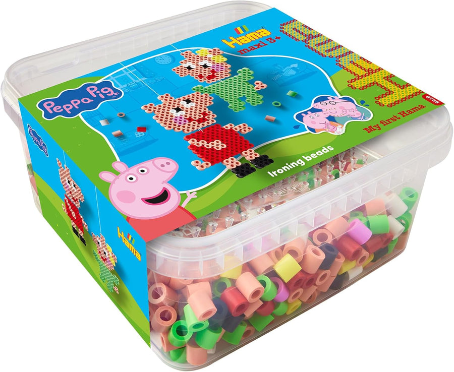 Hama Perlen 8755 Peppa Wutz & Schwester, Maxi-Box mit 900 Perlen, transparente Stiftplatte, Motivvor