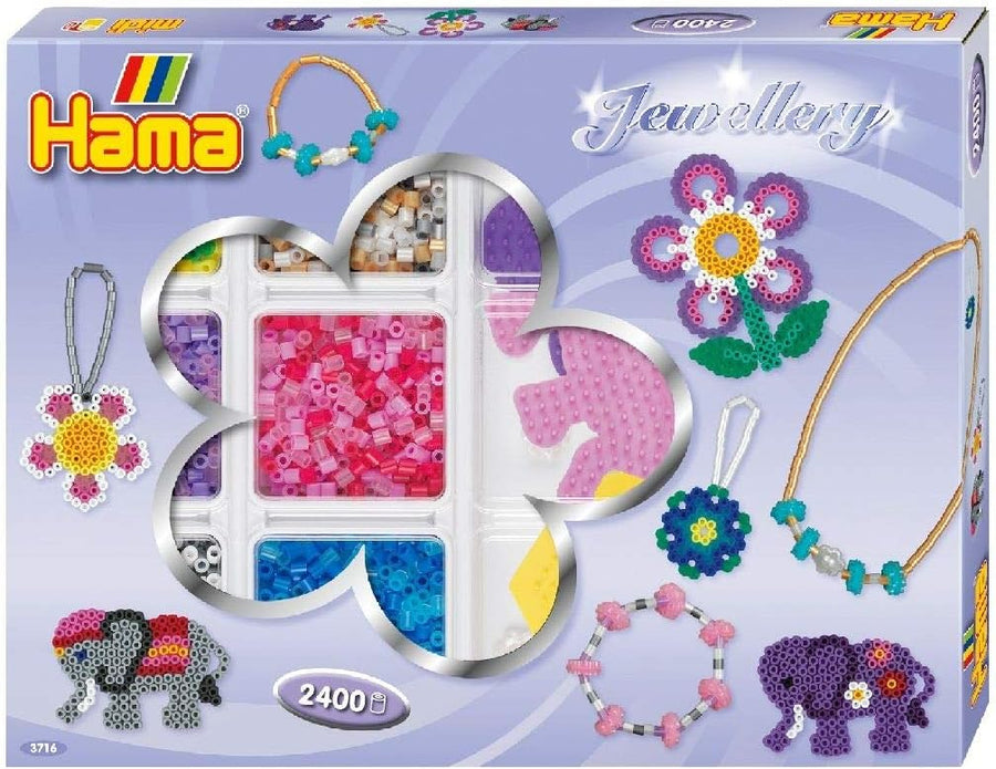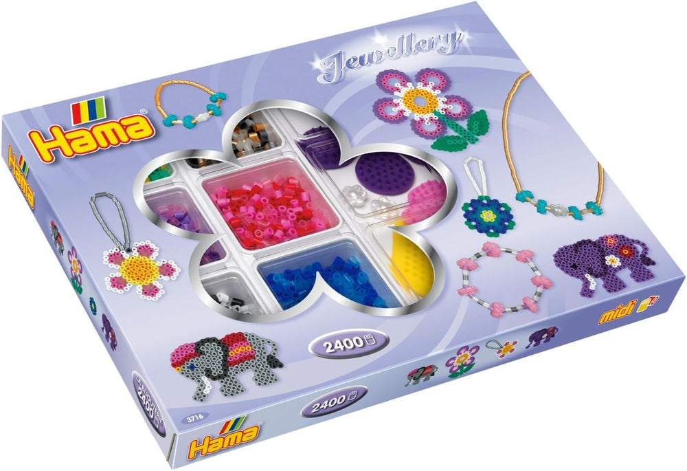 Hama Perlen 3716 Kreativbox Schmuck mit ca. 2.400 bunten Midi Bügelperlen mit Durchmesser 5 mm, 3 St