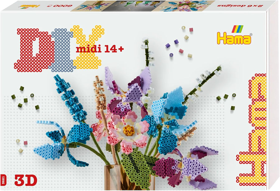 Hama Perlen 3621 Bügelperlen Blumenstrauss mit 3D Effekt, Geschenkbox mit ca. 6000 Midi-Perlen, inkl