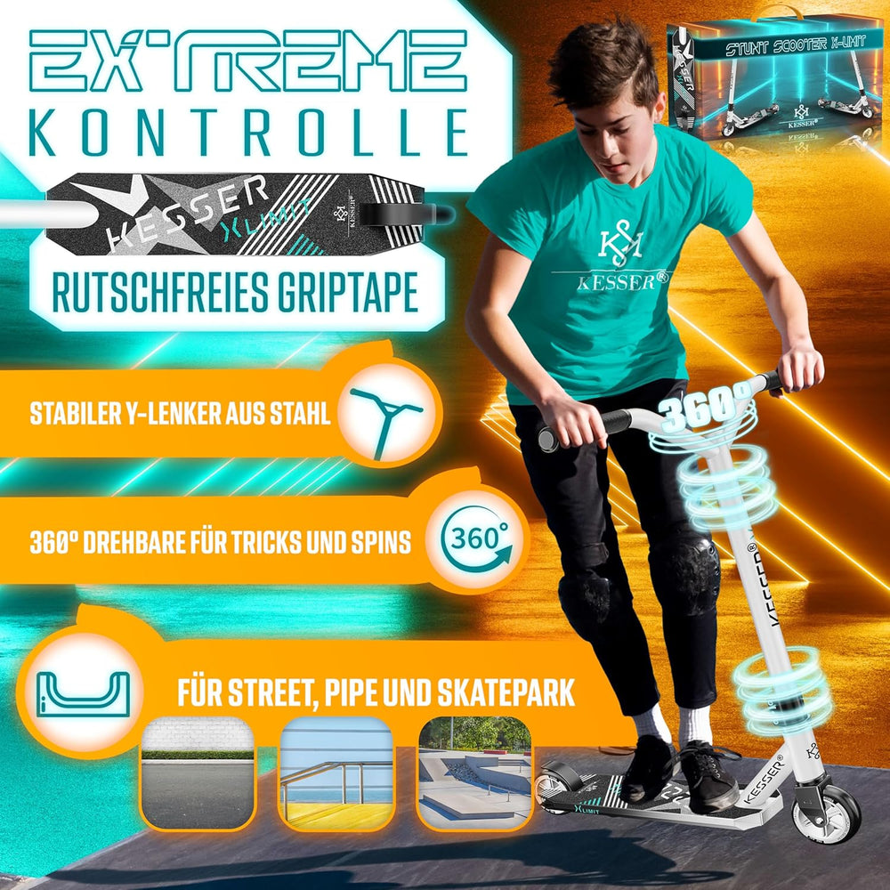 KESSER® Stunt Scooter X-Limit - 360° Lenkung Robuster Funscooter Stuntscooter mit ABEC 9 Kugellagern