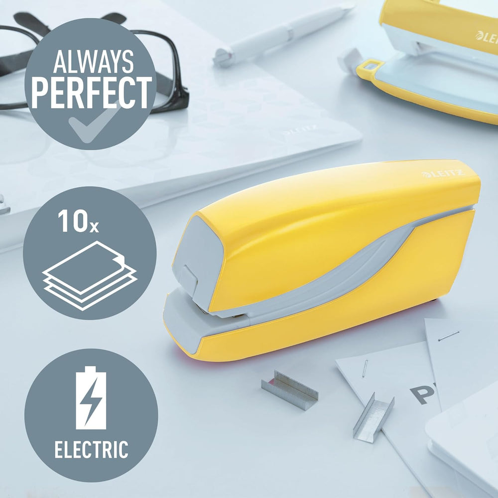 Leitz NeXXt elektrisches Heftgerät, gelb, 10 Blatt, WOW, 55661016, Gelb