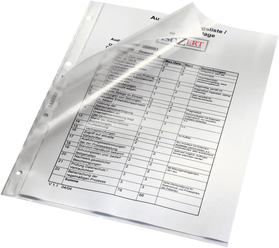 LEITZ Prospekthulle 0,13 mm oben und Lochseite offen (obere Folie durchgehend gelocht)