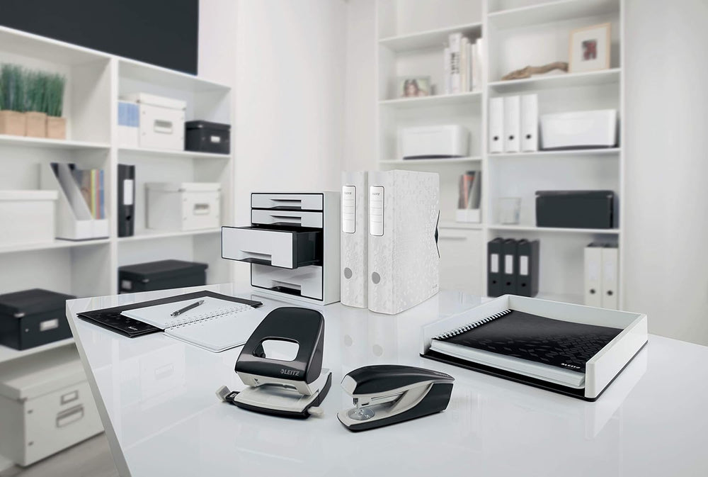 Leitz NeXXt Locher und Heftgerät Set für bis zu 30 Blatt, Inkl. Heftklammern, perlweiss, WOW, 509510