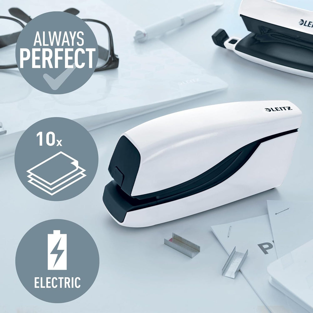 Leitz NeXXt elektrisches Heftgerät, 10 Blatt, perlweiss, WOW, 55661001, Weiss