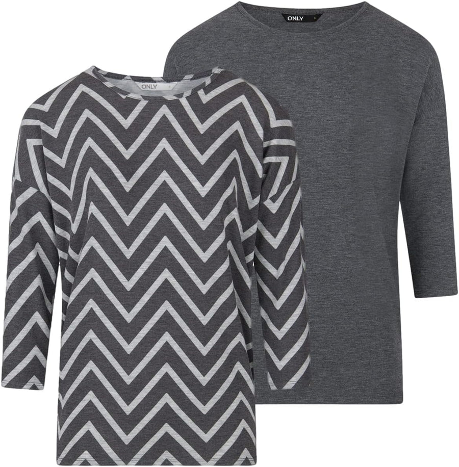 ONLY Damen Top ONLGLAMOUR 2er Pack 3/4 Ärmel Basic Shirt Rundhals Loose Fit Langarmshirt Oberteil Mu