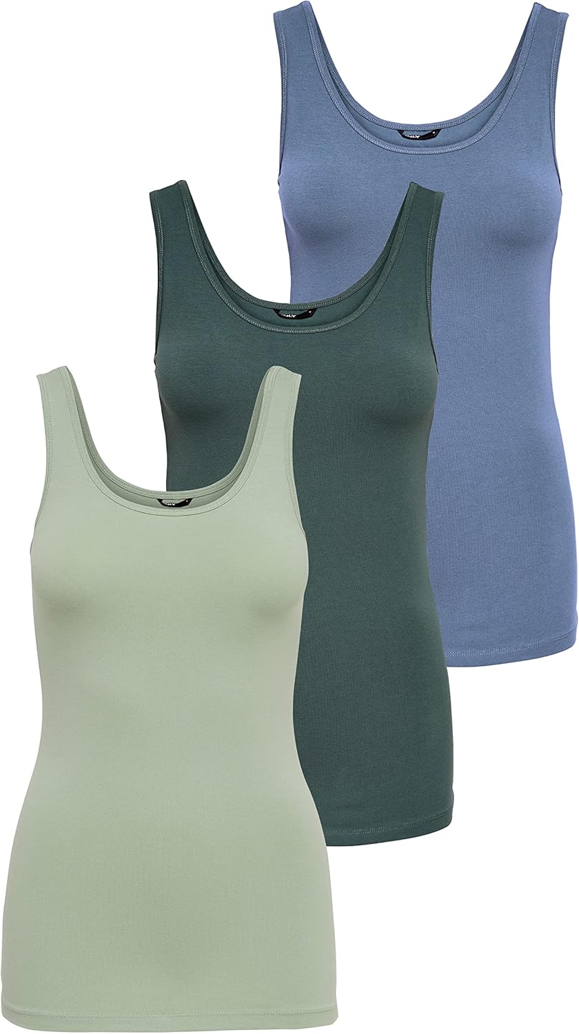 ONLY Damen Top Onllive Love Tank Noos XS Grün/Blau (1 X Desert Sage/ 1x Balsam Green/ 1x China Blue)