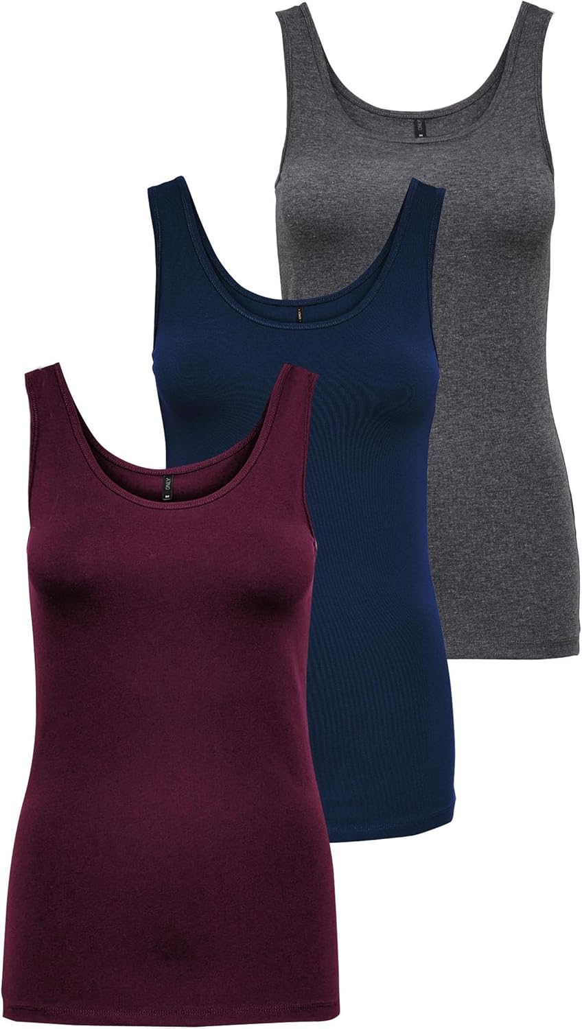 ONLY Damen Top Onllive Love Tank Noos S 3er Pack (Dark Grey Melange, Pageant Blue, Port Royale), S 3