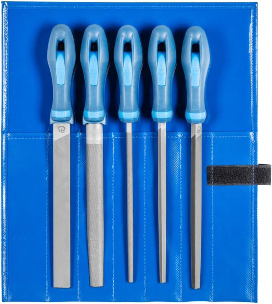PFERD Werkstattfeilen-Set in PVC-Rolltasche, 5 Feilen, Kreuzhieb H1, 200mm, 11800531 - für die grobe