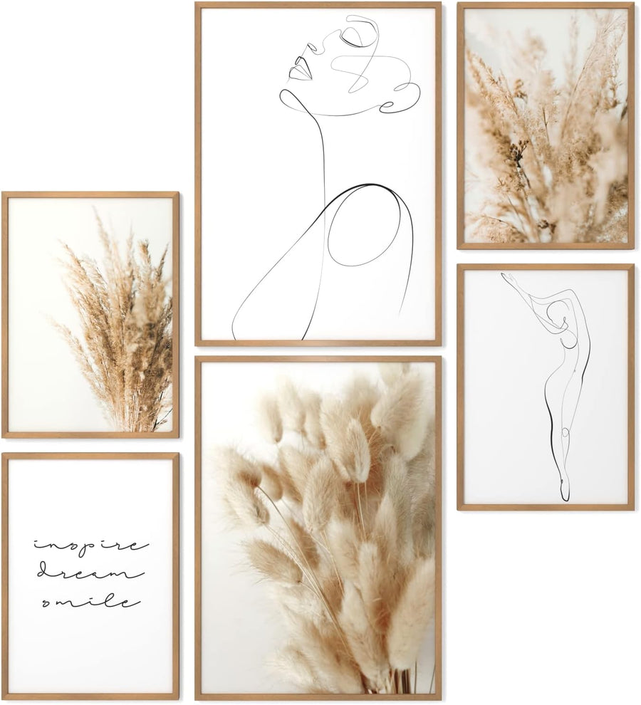 Papierschmiede® Mood Poster Set Pampas Woman, Deko Bilder Wohnzimmer, 2x 30x40 cm und 4x 20x30 cm, H