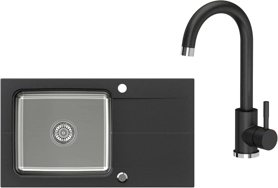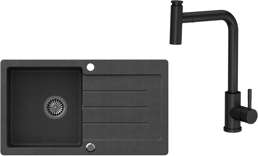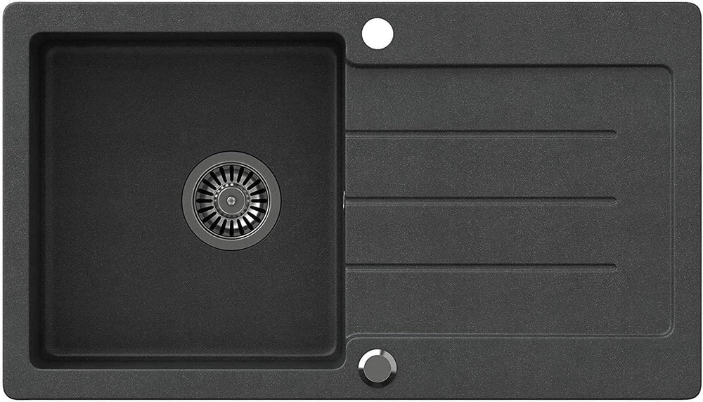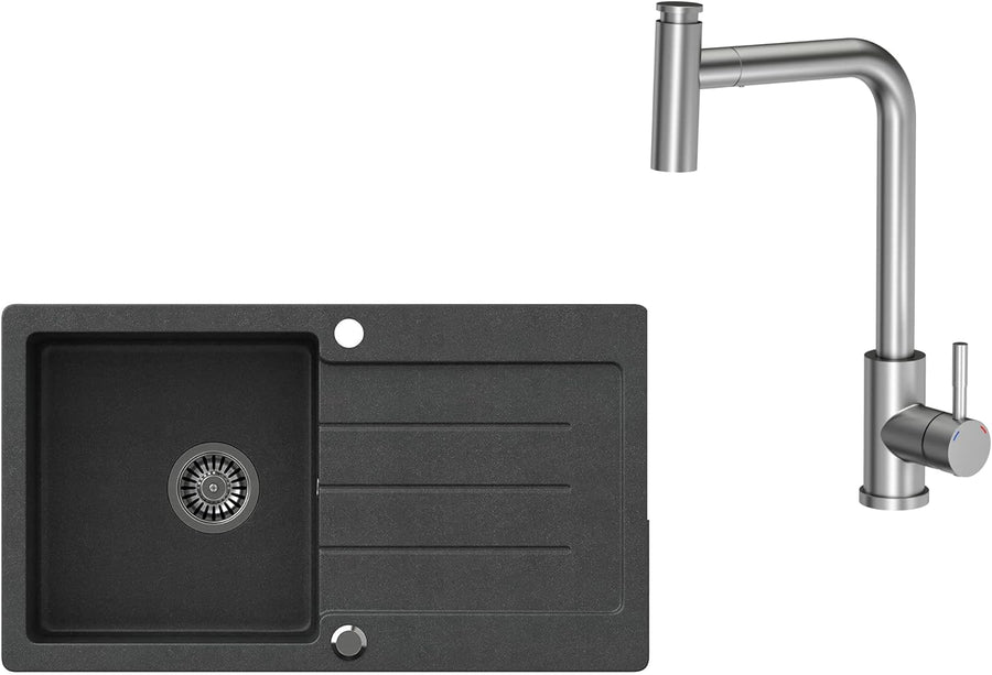 VBChome Spülbecken Schwarz mit Armatur 78x44 Edehlstahlbecken Granit Küchenspüle Siphon reversibel g