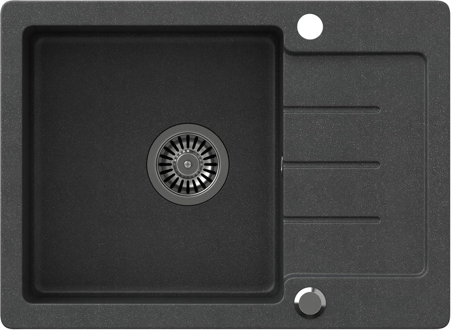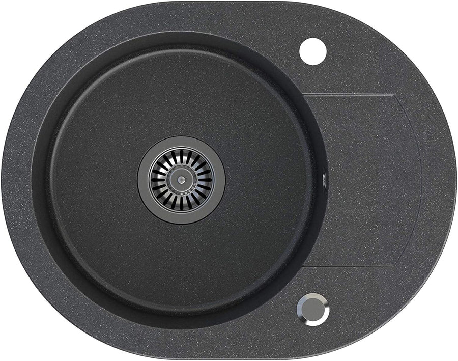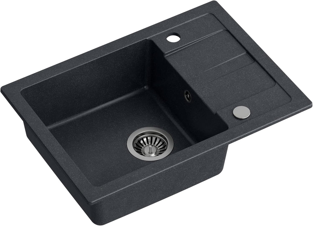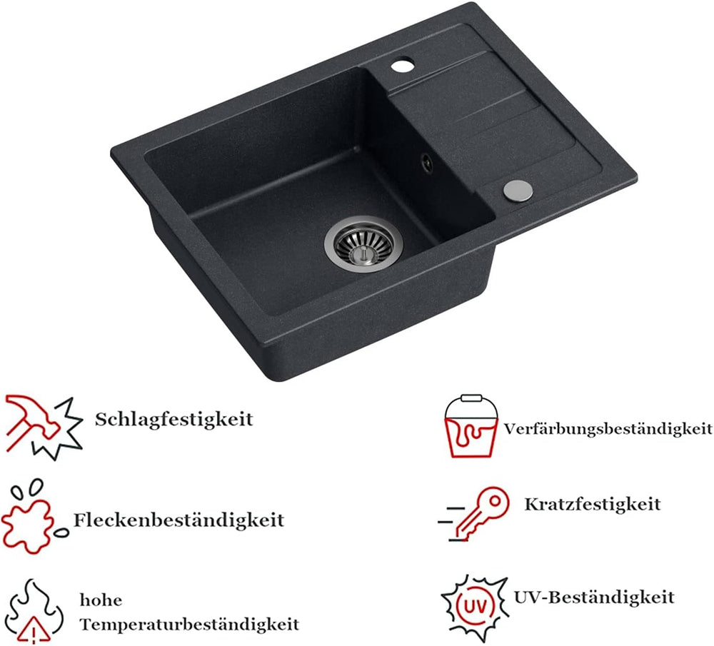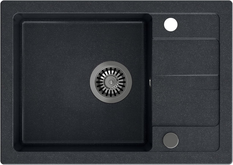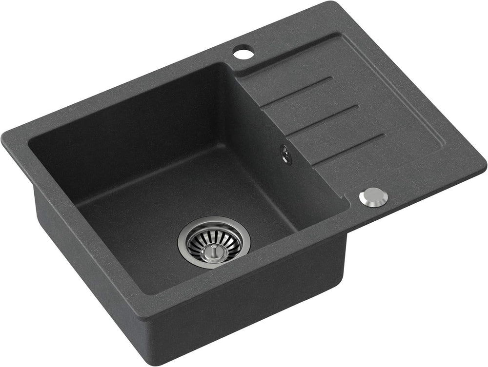 VBChome Spüle 62 x 44 cm Schwarz Granit Einzelbecken Einbauspüle Abtroffläche gesprenkelt reversibel