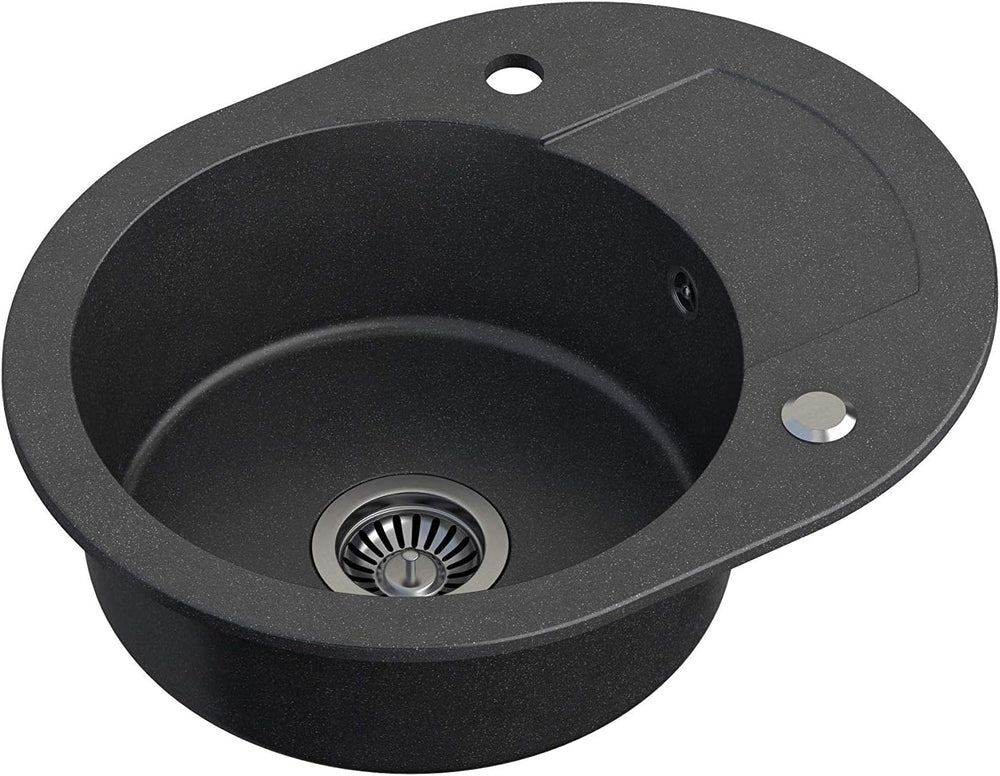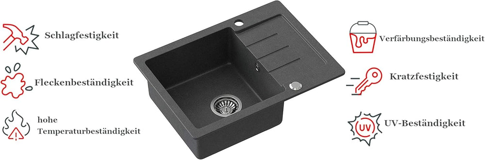 VBChome Spülbecken Schwarz 59x46 cm Spüle Granit Einzelbecken Küche Einbauspüle Verbundspüle Küchens