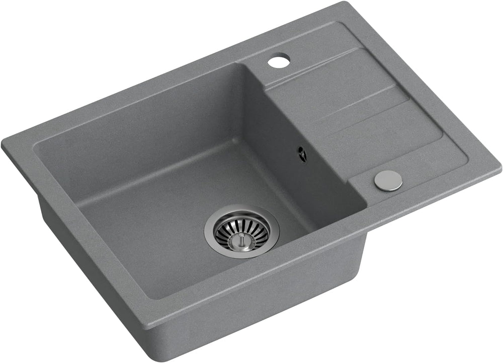 VBChome Spüle 62 x 44 cm Grau Granit Einzelbecken Einbauspüle Abtroffläche gesprenkelt reversibel Ve