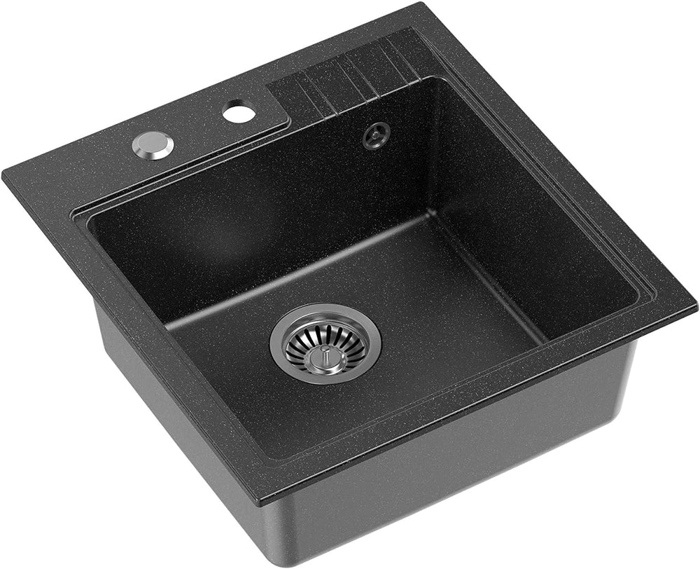 VBChome Spüle 52 x 50 cm Schwarz Tiefes Becken 20cm Küche Einbauspüle Verbundspüle Küchenspüle Einze