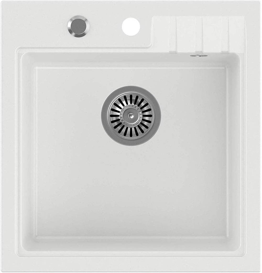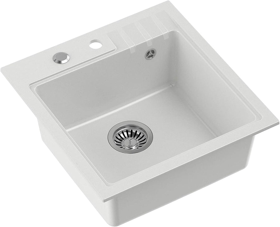 VBChome Spüle 52 x 50 cm Weiss Tiefes Becken 20cm Küche Einbauspüle Gesprenkelt Verbundspüle Küchens