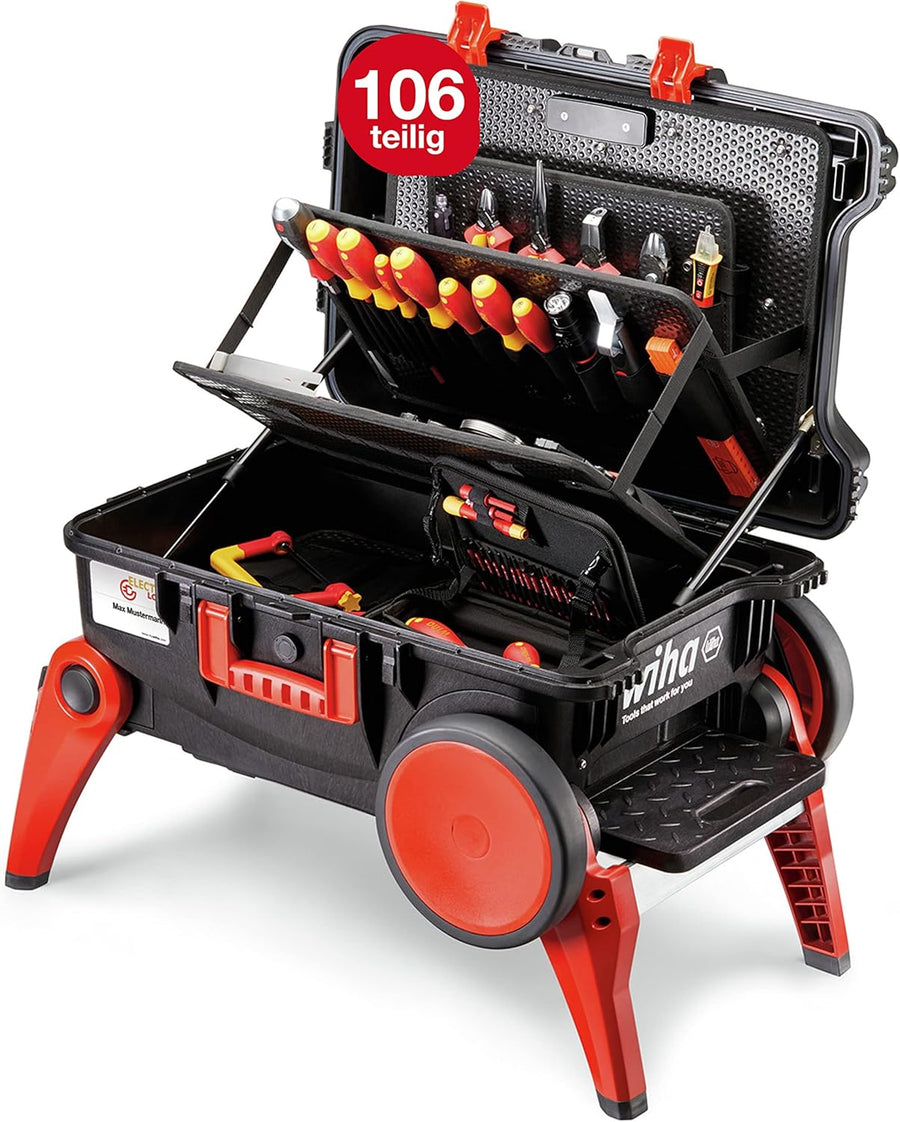 Wiha Werkzeugkoffer Set XXL III electric I 106-tlg. I Trolley mit ausklappbaren Beinen I Werkzeugkas