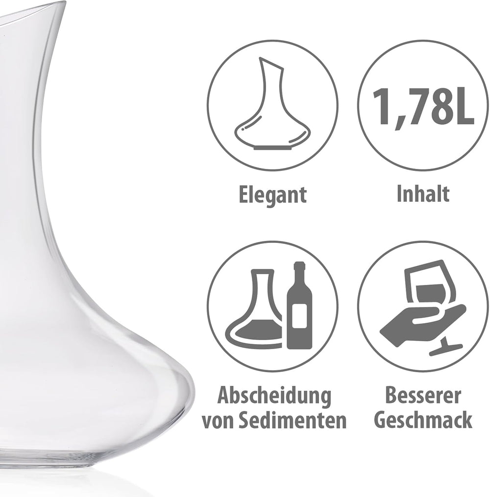 Alpina Premium Dekanter aus Glas – Wein Karaffe 1,78 L im schwungvollen Design | 20 x 24cm mit anges