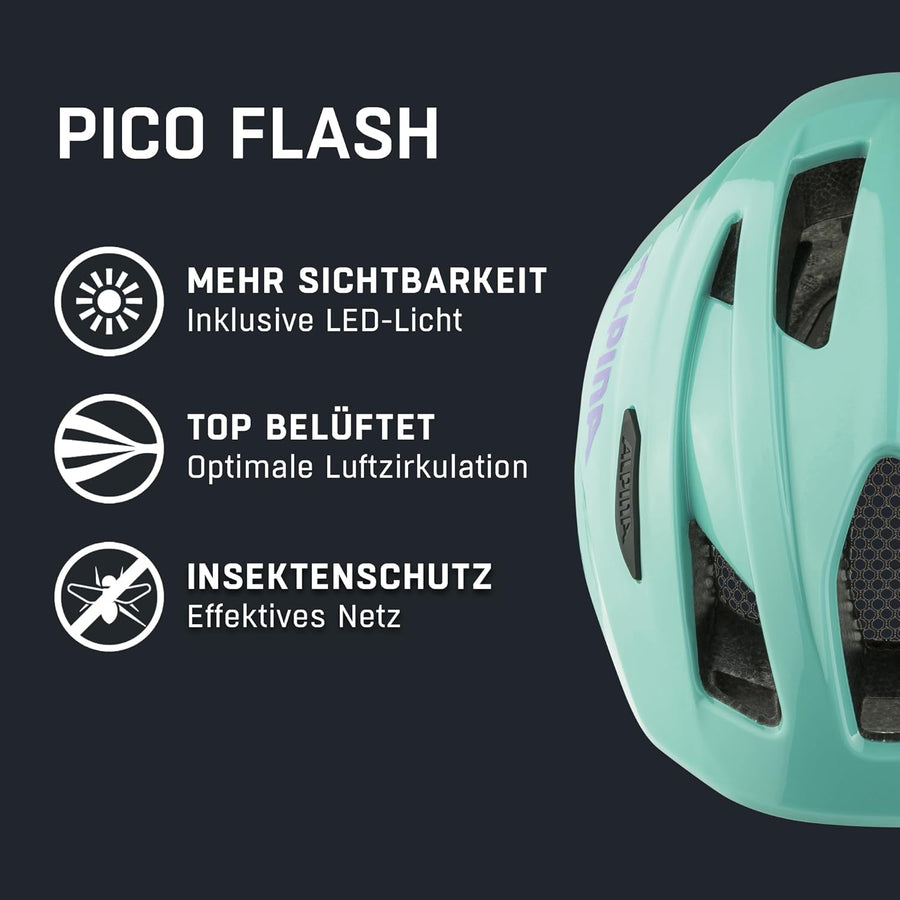 ALPINA PICO FLASH - Beleuchteter, Leichter & Bruchfester Fahrradhelm Mit Fliegennetz Für Kinder be v