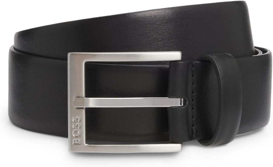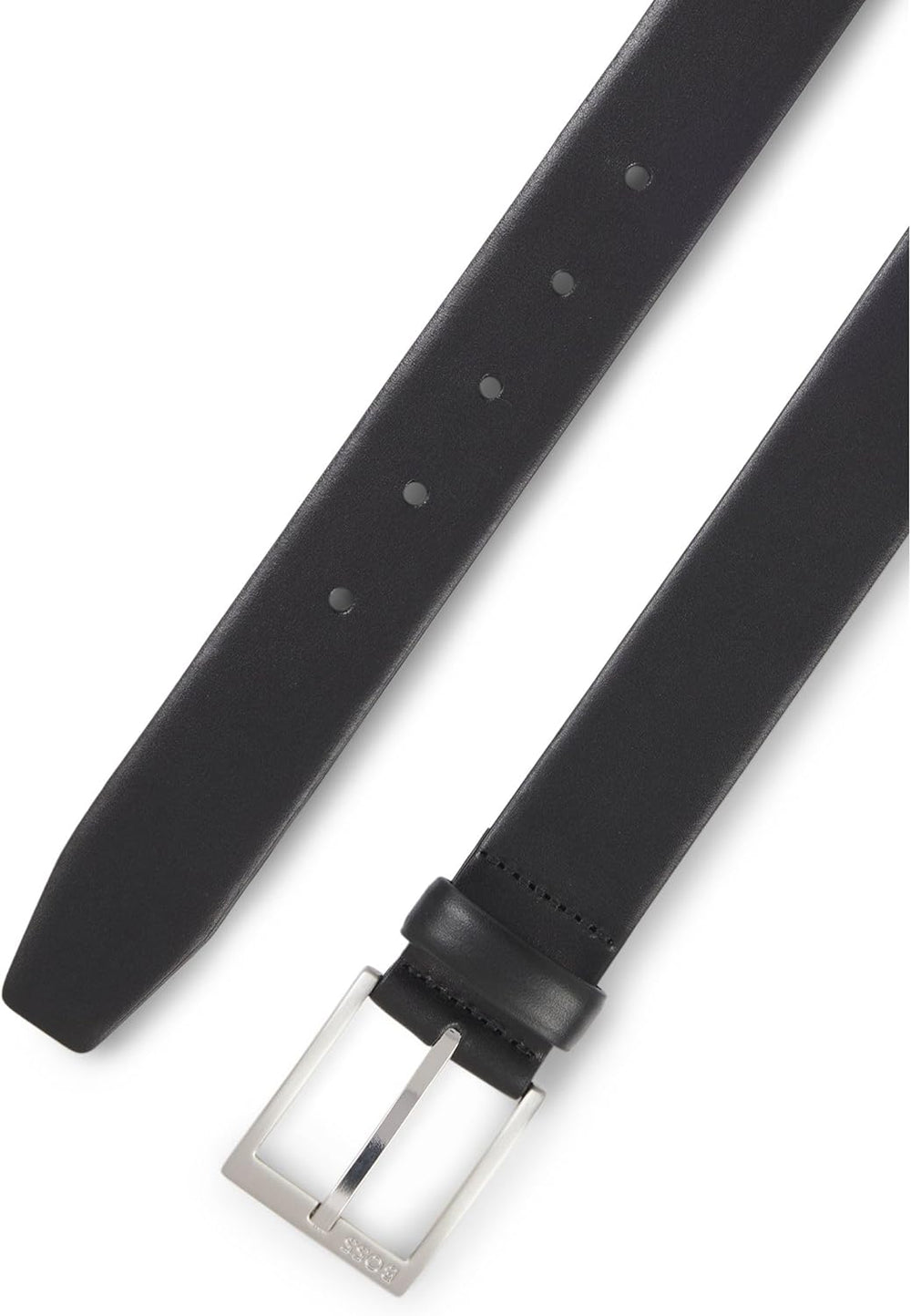 BOSS Herren Erron Sz35 Gürtel aus italienischem Leder mit silberfarbener Schliesse 80 Black1, 80 Bla