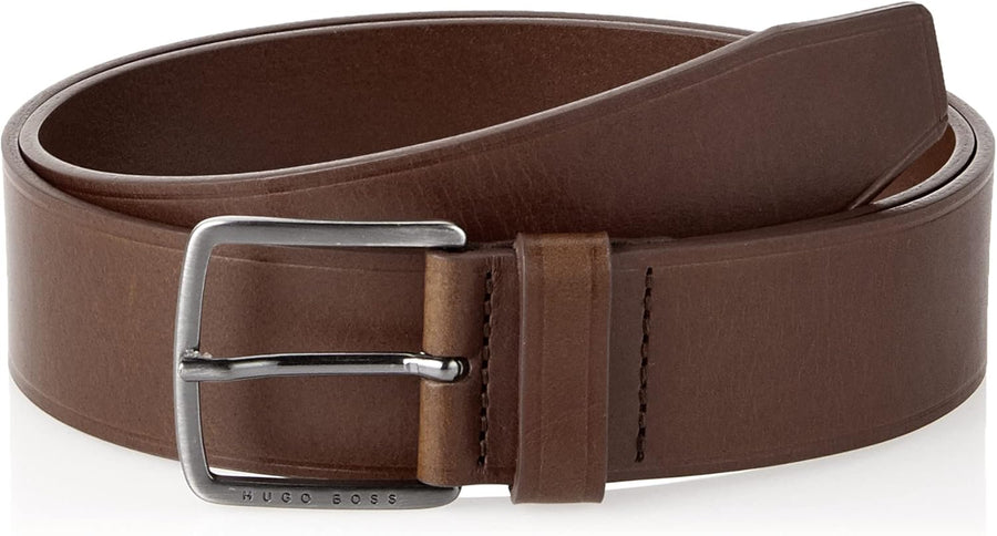 BOSS Herren Erron Sz35 Gürtel aus italienischem Leder mit silberfarbener Schliesse 110 Dark Brown203