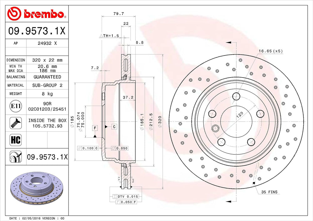 Brembo 09.9573.11 COATED DISC LINE Bremsscheibe - Paar