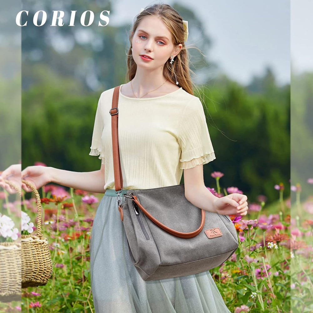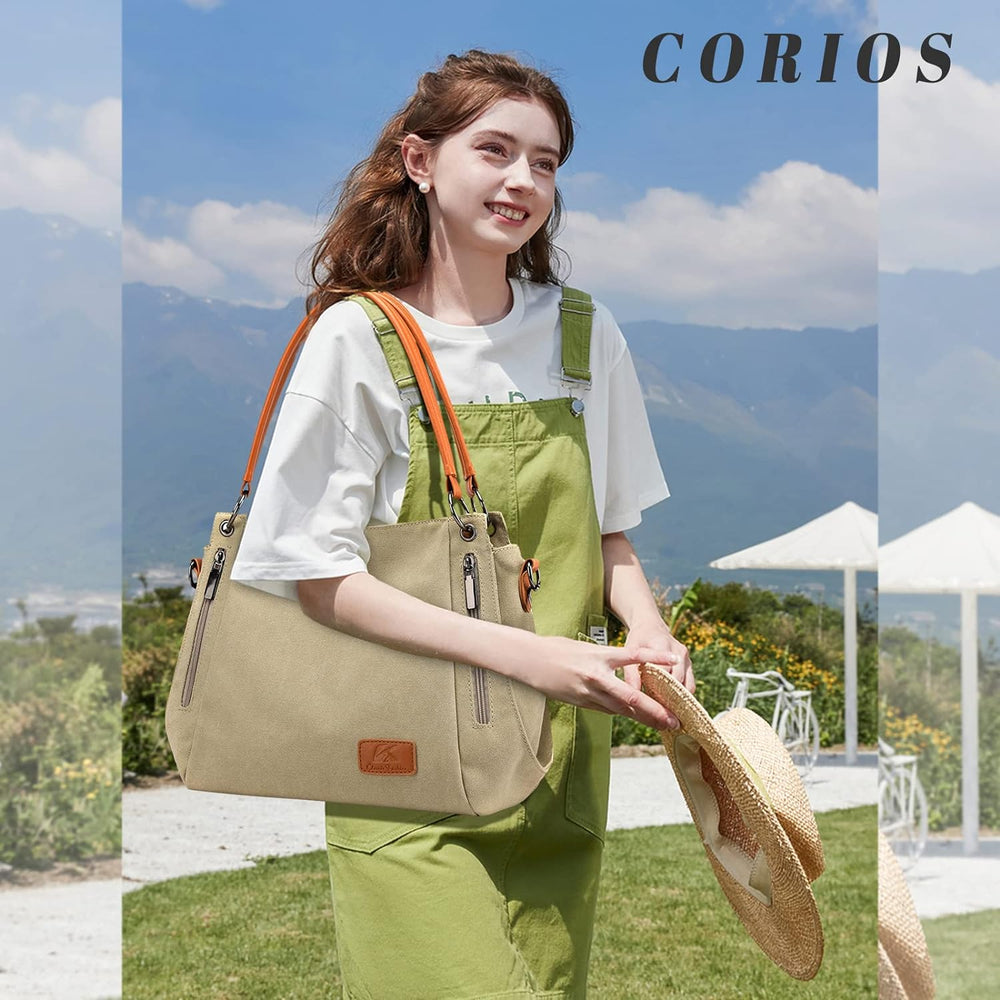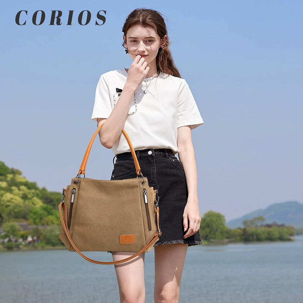 CORIOS Retro Damen Handtasche Canvas Schultertasche Henkeltasche Tragetasche Casual Umhängetasche Mu