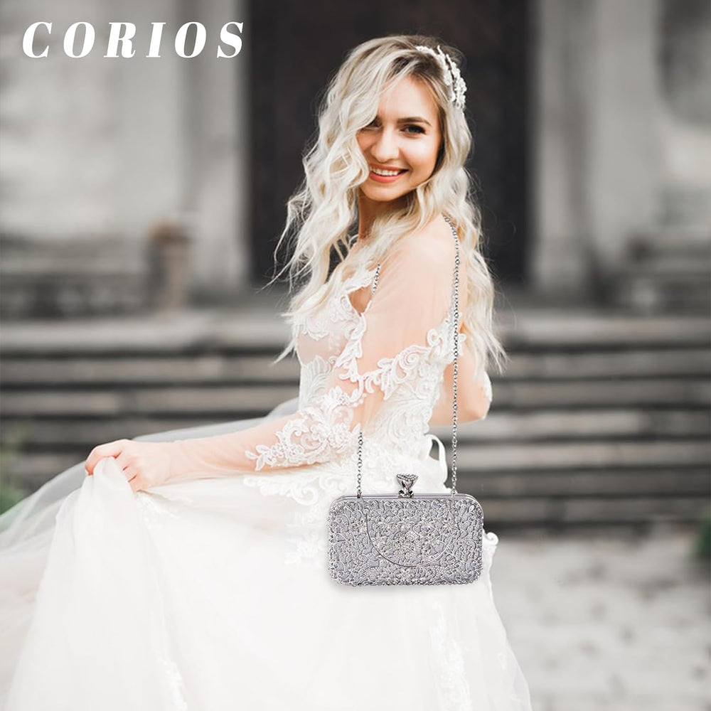 CORIOS Strass Abendtasche für Damen Brauttasche Shiny Diamant Clutch Tasche Klein Tasche Elegante Ke