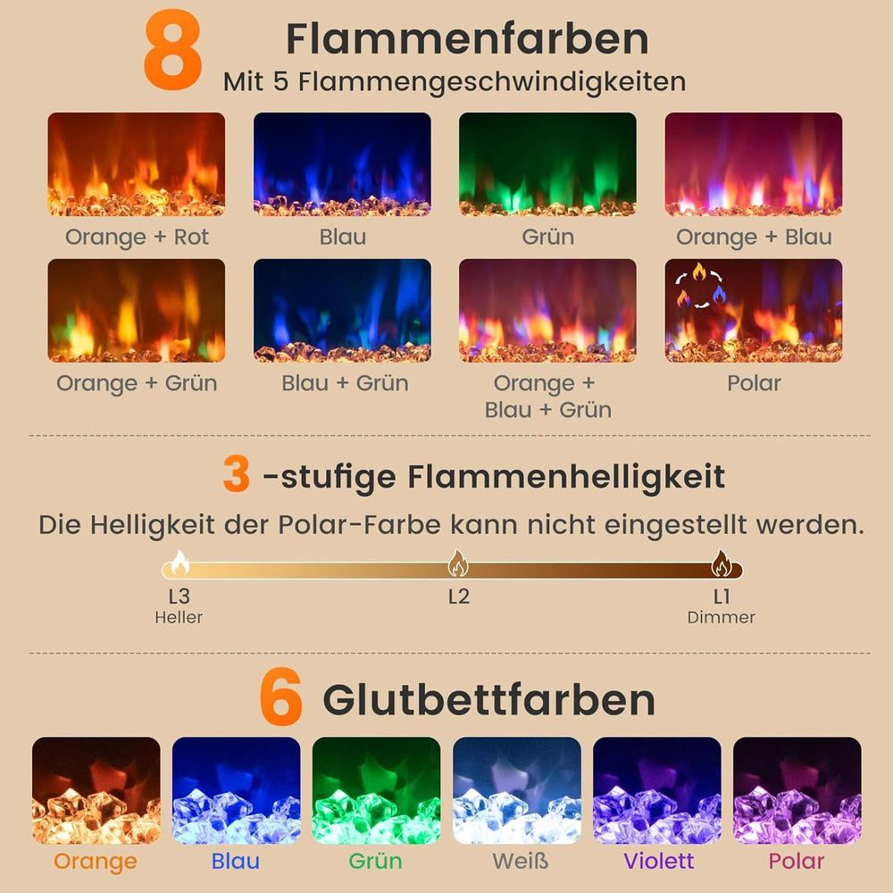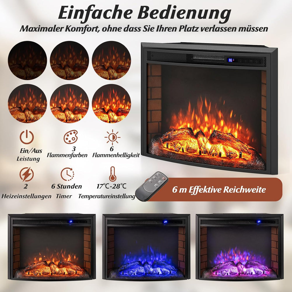 COSTWAY Elektrokamin mit Heizung 1500W, Einbaukamin mit Fernbedienung, 0,5-9H Timer, einstellbare 3D
