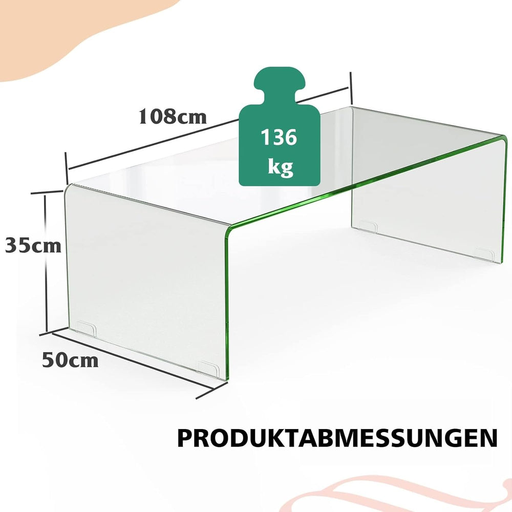 COSTWAY Couchtisch aus gehärtetem Glas, U-förmiger Beistelltisch, Moderner Glastisch, Wohnzimmertisc