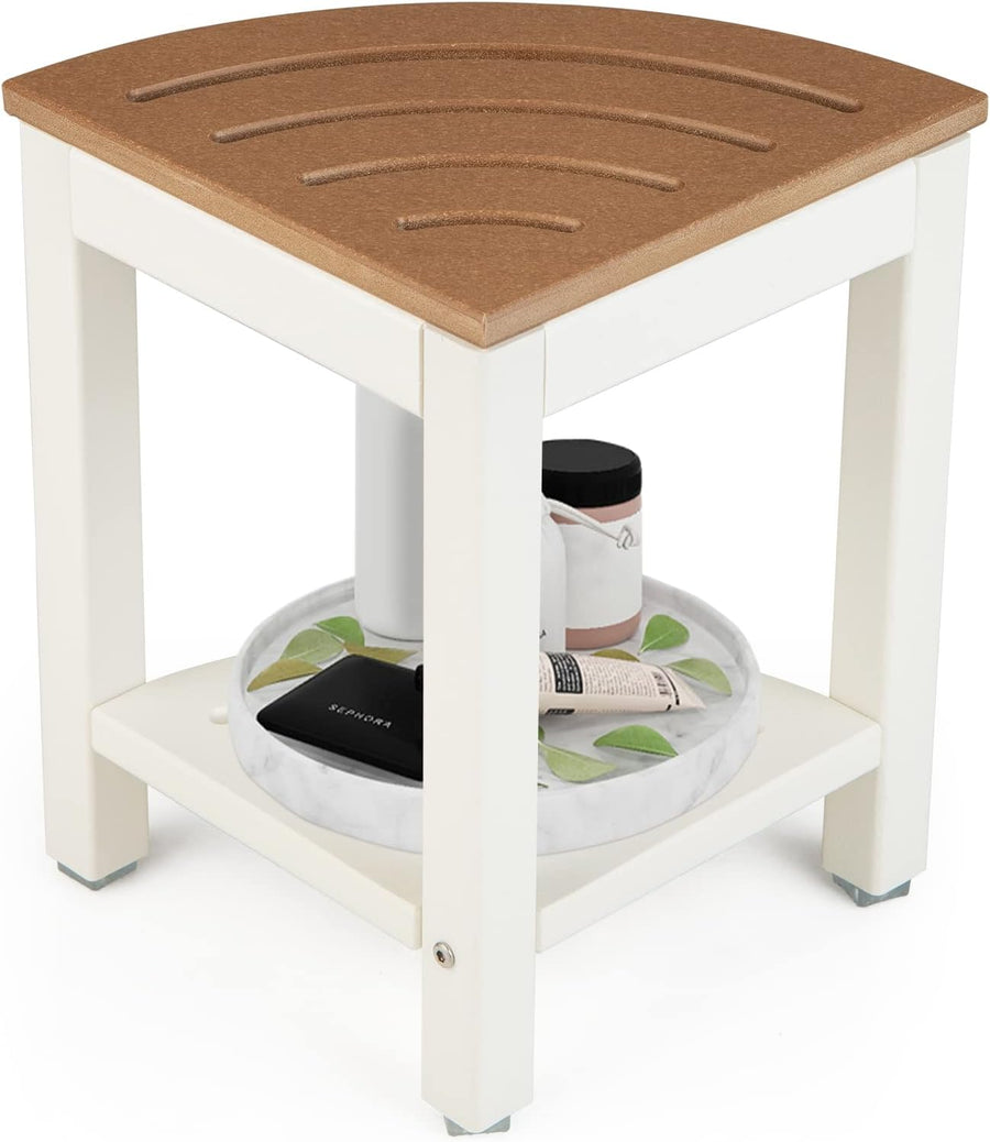 COSTWAY Duschbank Bad, Sitzbank mit Ablage, Badhocker Badezimmerbank Duschstuhl, Eck-Duschhocker (32