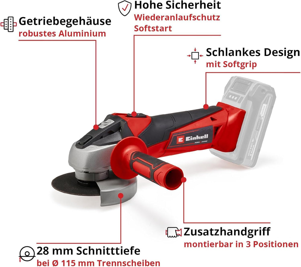 Einhell Akku-Winkelschleifer TC-AG 18/115 Li-Solo Power X-Change (18 V, 115 mm Scheibendurchmesser,