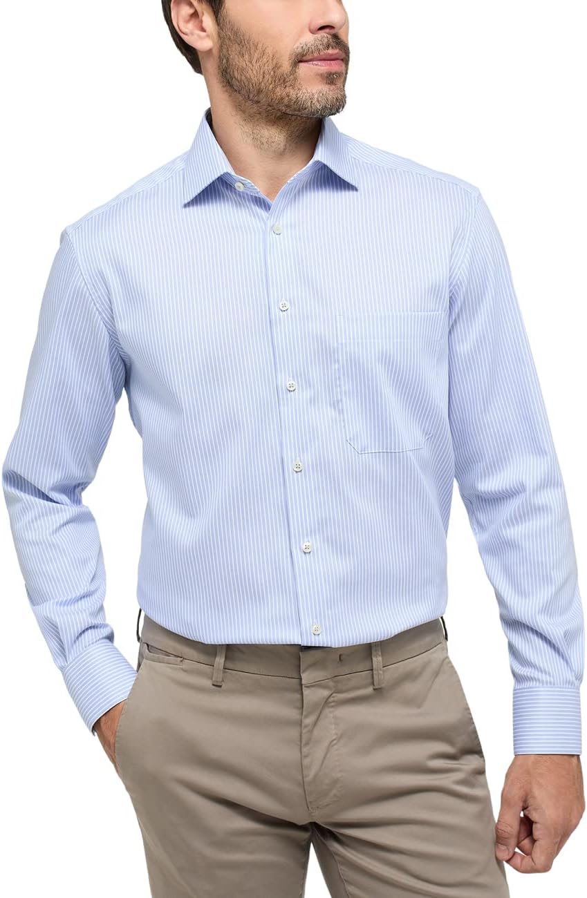 ETERNA, Langarm-Streifenhemd mit Brusttasche, Comfort Fit 46 Hellblau, 46 Hellblau