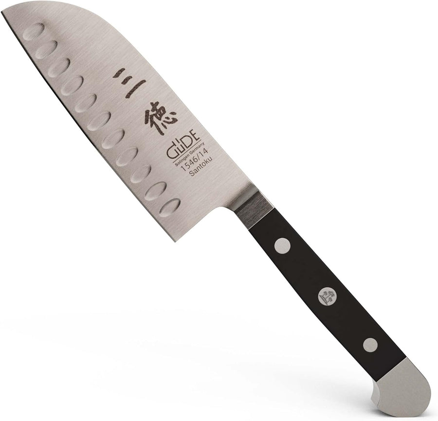GÜDE Solingen - Santoku mit Kulle geschmiedet, 14 cm, POM schwarz, ALPHA, Doppelkropf, Handmade Germ