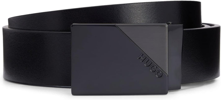 HUGO Herren Gelio-C Sz40 Ledergürtel mit Dornschliesse und Logo-Details 90 Black1, 90 Black1