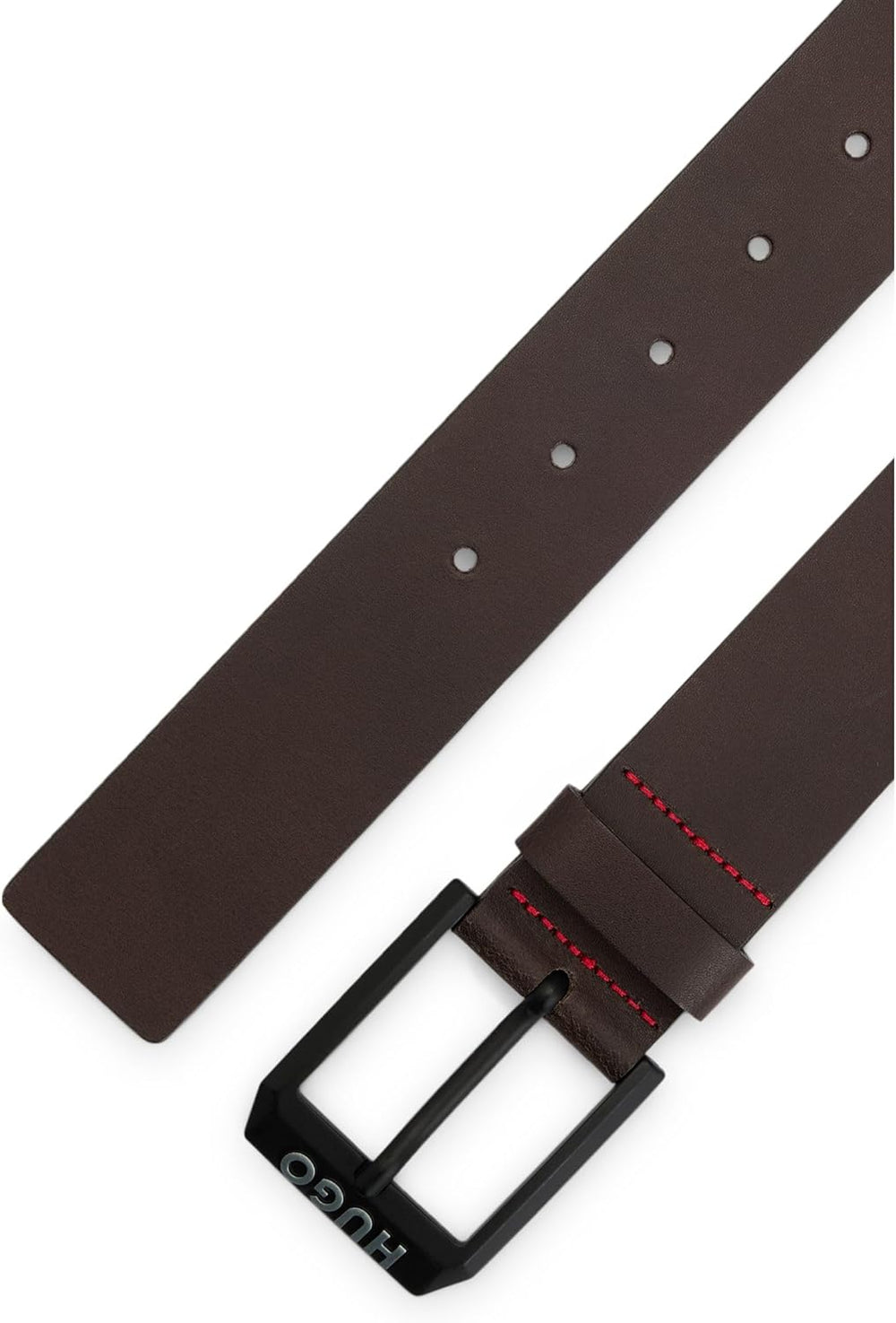 HUGO Herren Gelio-B Sz40 Ledergürtel mit mattschwarzer Logo-Schliesse, 80 Dark Brown202