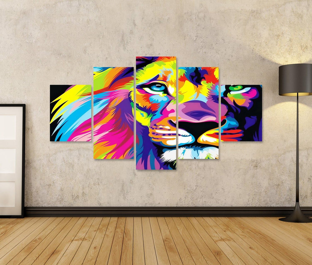 Bild Bilder auf Leinwand Bunter Löwe Banksy Street Art Abstrakte Kunst Wandbild, Poster, Leinwandbil