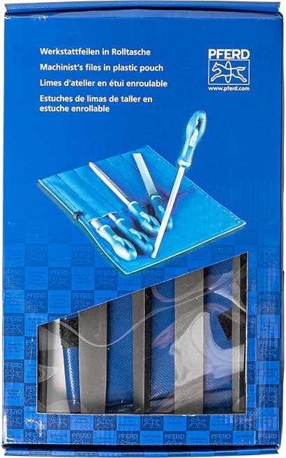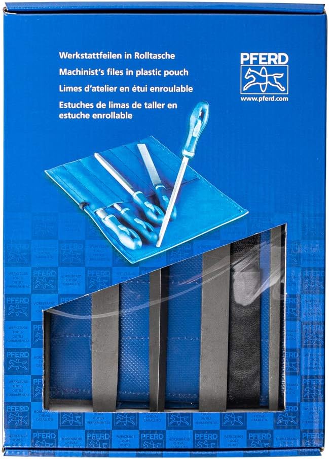 PFERD Werkstattfeilen-Set in PVC-Rolltasche mit Umkarton, 5 Feilen, Kreuzhieb H3, 250mm, 11801543 –